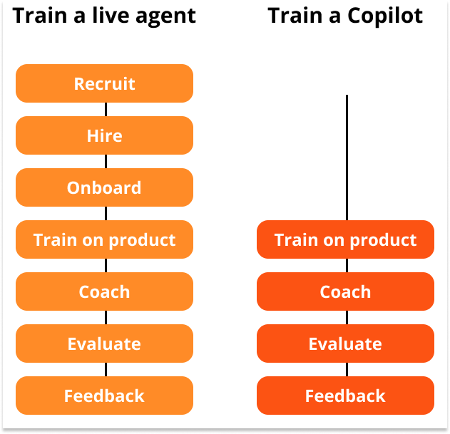 Training humans means recruiting, hiring, onboarding, coaching and endless feedback cycles. Training Copilot follows a similar process, just compressed.