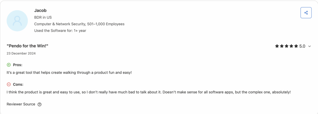“Pendo is powerful but overkill for our needs. Product Fruits does everything we needed at 1/10th the complexity and cost.” — Capterra Reviewer, Startup Founder