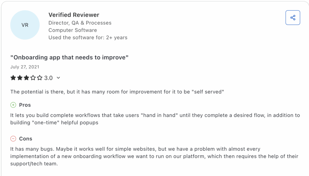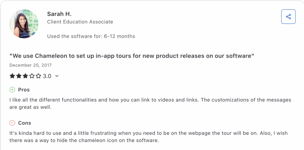 Real User Reviews from people who have used Chameleon to build their product tours: