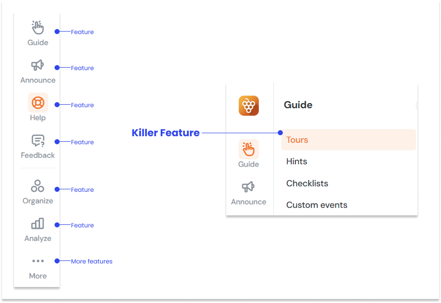 Like most SaaS platforms, we serve multiple jobs-to-be-done. Our users come to us for a range of in-product communication needs. But as the Pareto principle suggests, one job consistently rises above the rest—helping their end users quickly understand core product functionality through interactive product tour.